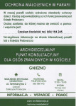 - w naszej parafii jest wyznaczona zaufana osoba, do której zawsze można się zgłosić, gdy Tobie lub komuś innemu dzieje się jakaś krzywda lub czujesz się zagrożony – zadzwoń: (imię, nazwisko i nr telefonu osoby zaufanej);